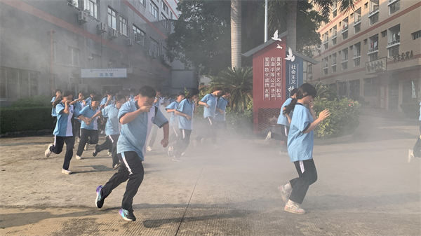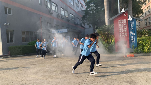 下午3時,消防警報劃破長空,橙色煙霧模擬火場環(huán)境迅速彌漫樓道。在軍訓(xùn)教官和學(xué)工處老師的聯(lián)合組織下,同學(xué)們迅速用濕毛巾捂住口鼻,低姿彎腰沿墻前行,按照預(yù)定疏散路線快速向開闊地帶轉(zhuǎn)移。整個過程中,同學(xué)們沉著冷靜、動作規(guī)范,快速有序疏散,安全抵達(dá)集結(jié)區(qū)域,展現(xiàn)出良好的紀(jì)律意識和協(xié)作能力。