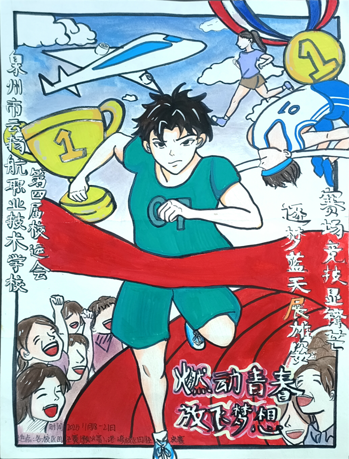 此次設(shè)計(jì)大賽,既是我校學(xué)子創(chuàng)意才華的集中展示,也是美術(shù)設(shè)計(jì)類專業(yè)教學(xué)成果的生動(dòng)呈現(xiàn)。未來,學(xué)校將繼續(xù)搭建多元展示平臺,讓更多學(xué)子在青春的賽道上綻放光彩!讓我們共同期待校運(yùn)會(huì)精彩啟幕,也愿同學(xué)們始終以創(chuàng)意為帆、以熱愛為槳,逐夢前行、不負(fù)韶華!