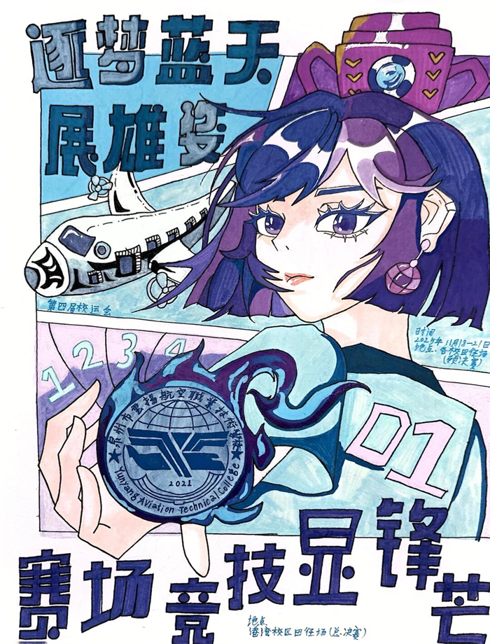 在我校第四屆運(yùn)動(dòng)會(huì)即將到來之際,為豐富校園文化、深化美育教育、激發(fā)創(chuàng)新活力,校團(tuán)委與教務(wù)處聯(lián)合發(fā)起會(huì)徽與海報(bào)設(shè)計(jì)大賽。活動(dòng)收獲全校學(xué)子的熱忱響應(yīng),179 件會(huì)徽、281 件海報(bào)作品紛至沓來,每一件都巧妙融合航空特色與體育精神,盡顯創(chuàng)意巧思。