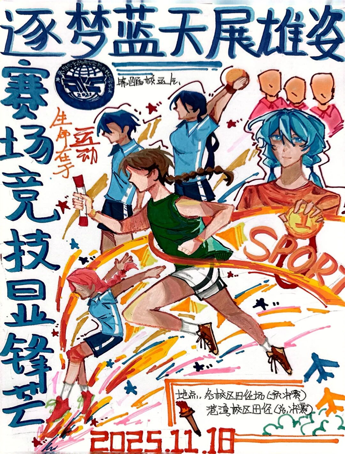281 份海報(bào)勾勒賽場百態(tài),10 份精品提前點(diǎn)燃校運(yùn)熱情。強(qiáng)烈色彩對比的作品,直擊速度與激情的賽場內(nèi)核;柔和筆觸勾勒的畫面,傳遞夢想啟航的溫情力量;細(xì)節(jié)滿滿的創(chuàng)作,則藏著對校運(yùn)會(huì)的無限期許。一張張生動(dòng)鮮活的海報(bào),不僅成為校園里的亮眼風(fēng)景線,更讓全校師生對校運(yùn)會(huì)的期待值拉滿!