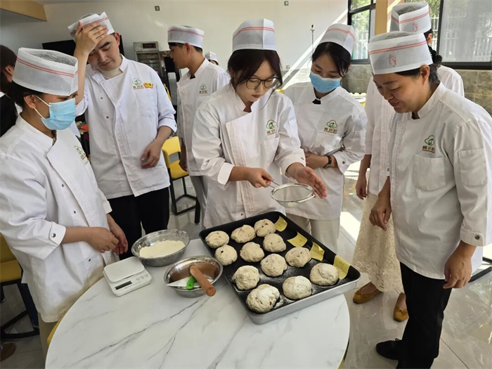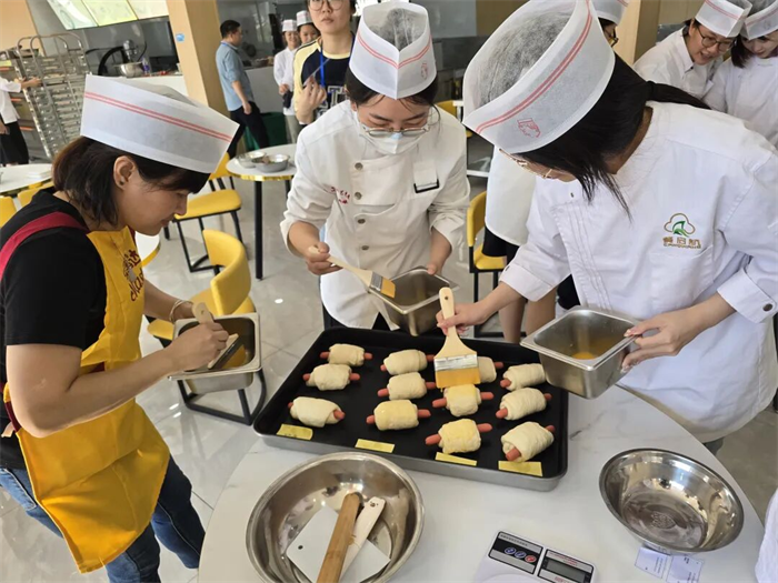 培訓中,專業(yè)教師圍繞面包烘焙全流程,系統(tǒng)講授了面粉種類與特性、酵母作用原理、發(fā)酵環(huán)境控制、烘焙時間把握等核心知識,講解深入淺出、細致到位。教職工們學習熱情高漲,在揉面、發(fā)酵、整形等實操環(huán)節(jié)反復練習、用心揣摩,逐步掌握了面包制作的關鍵技能。從最初的“烘焙小白”到能夠熟練制作多種經(jīng)典面包,大家的進步有目共睹,也為迎接考核打下堅實基礎。