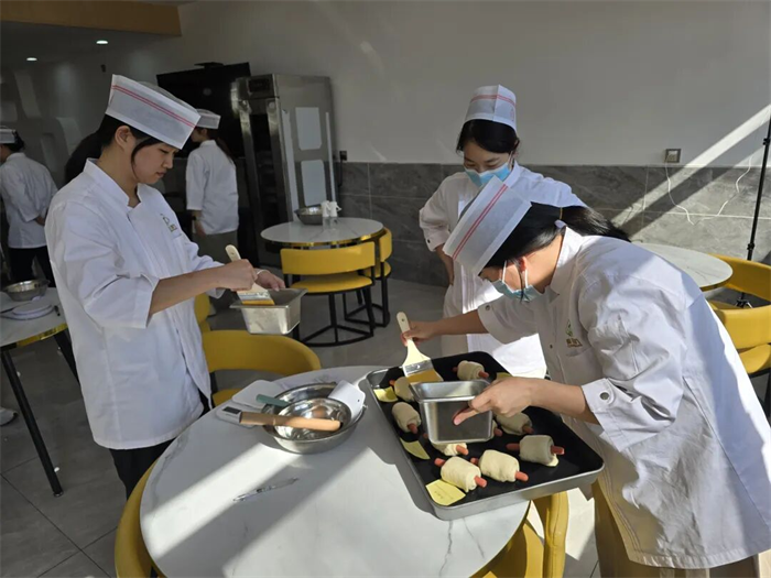 考核現(xiàn)場氣氛既熱烈又緊張。教職工們統(tǒng)一身著廚師服,精神抖擻地步入實訓室。考核指令一下,大家迅速進入狀態(tài)。有的老師揉面動作行云流水,面團在指尖自如變換;有的老師細心觀察面團發(fā)酵狀態(tài),眼神中滿是對完美成品的追求。隨著烤箱中飄散出陣陣誘人香氣,大家都在期待作品出爐的那一刻——那香氣,正是對他們努力最好的回報。