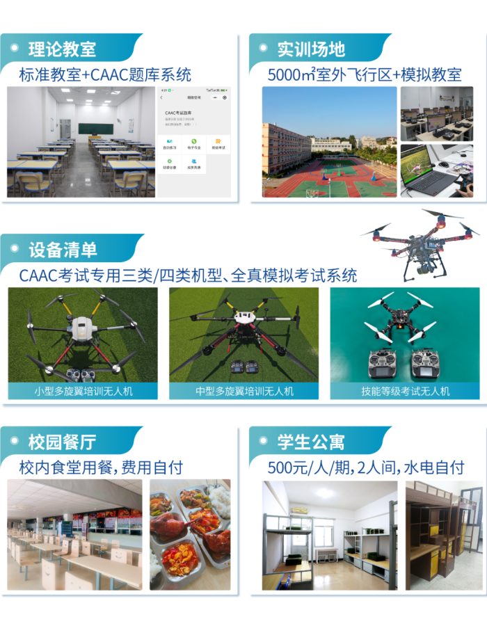 學(xué)校占地123畝,由黃塘和港灣校區(qū)組成。建有室內(nèi)外無人機(jī)標(biāo)準(zhǔn)訓(xùn)練場(chǎng),并配備專業(yè)的CAAC執(zhí)教團(tuán)隊(duì),可提供“理論教學(xué)-實(shí)操訓(xùn)練-執(zhí)照考核-就業(yè)推薦”一站式服務(wù)。