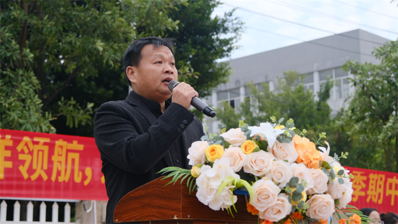伴隨主持人指令,本次表彰大會正式拉開帷幕。陳炳耀副校長從教學質(zhì)量、學生素養(yǎng)、師資建設(shè)三個方面作期中教學成果匯報,并贈予學子三句箴言:“基礎(chǔ)薄弱者,當從課本抓起;自律不足者,宜用小規(guī)矩約束;被動學習者,可定小目標突破?!辟|(zhì)樸而深刻的話語,贏得了全場師生的熱烈掌聲。