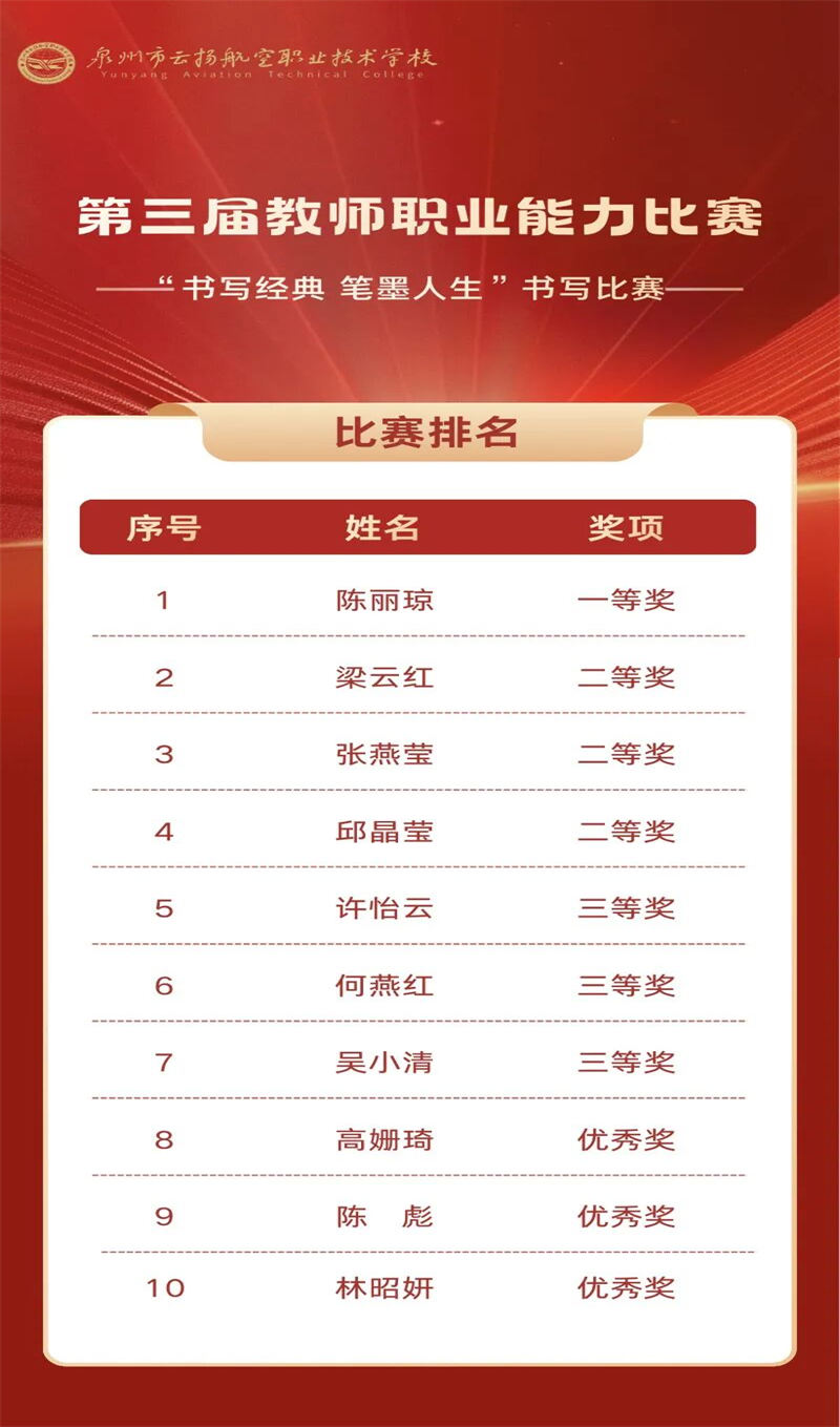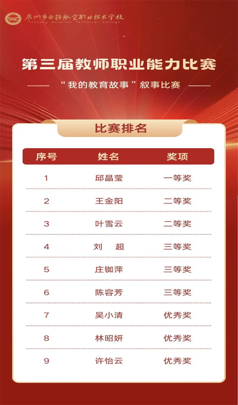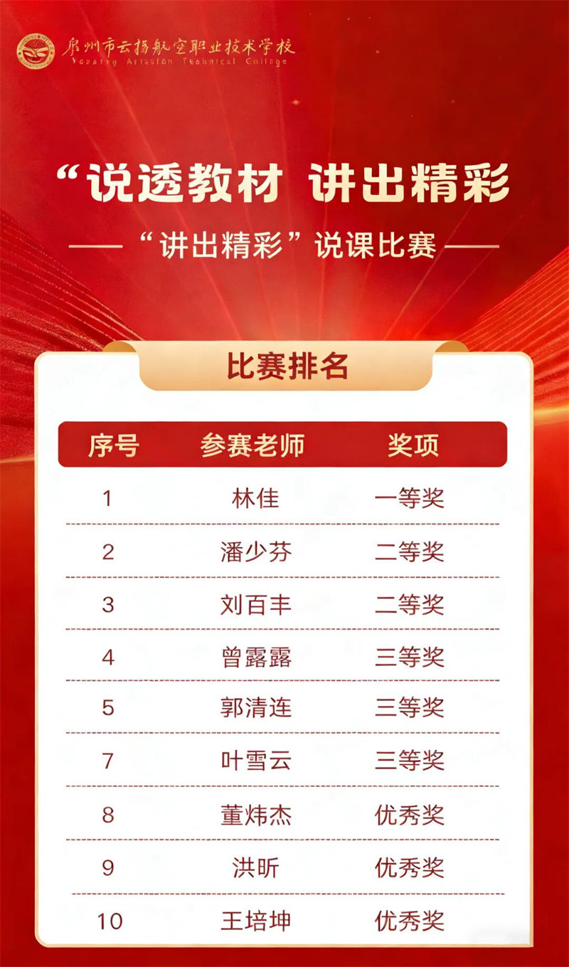 本屆大賽不僅全面檢驗(yàn)并提升了我校教職工的職業(yè)能力與綜合素養(yǎng),更是一次“以賽促教、以賽促改、以賽促建”的生動(dòng)實(shí)踐,營造了“比學(xué)趕超、爭先創(chuàng)優(yōu)”的良好氛圍。我校將持續(xù)深化教師隊(duì)伍建設(shè),推動(dòng)教育教學(xué)改革,為職業(yè)教育高質(zhì)量發(fā)展注入持久動(dòng)力。