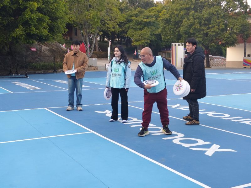 飛盤場上又是另一番生動景象。從生疏到熟練,從個人嘗試到團隊配合,一道道弧線在空中交織。校領(lǐng)導們也融入其中,與教職工們共同奔跑、傳遞,場上場下笑聲掌聲連綿不斷。這一刻,運動的活力與團隊的溫暖在山林間蕩漾開來。